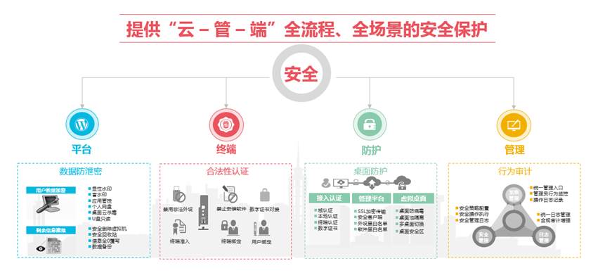 管理安全:管理员分权分域管理,桌面用户行为日志审计等