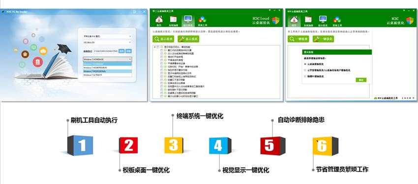 自动化扩容,硬件上电自动发现,灵活快速扩容;链接克隆桌面,提升用户体验,提高管理效率