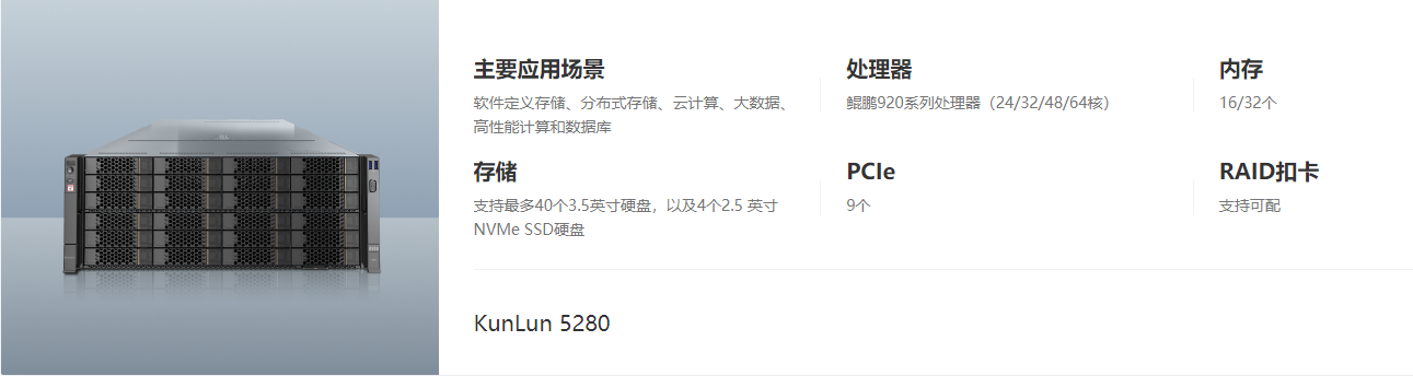 KunLun 2280是一款2U2路机架服务器,配置灵活,互联网、大数据、分布式存储、高性能计算、数据库等负载,2280支持2颗鲲鹏920处理器、最多32条DDR4内存、最多9个PCIe扩展槽。配置冗余的热插拔电源和风扇,通过技术优秀的散热设计,支持5~40℃的扩展温度,确保服务器能够7×24小时的长时间稳定运行,能够有效降低运营成本、提升投资回报。